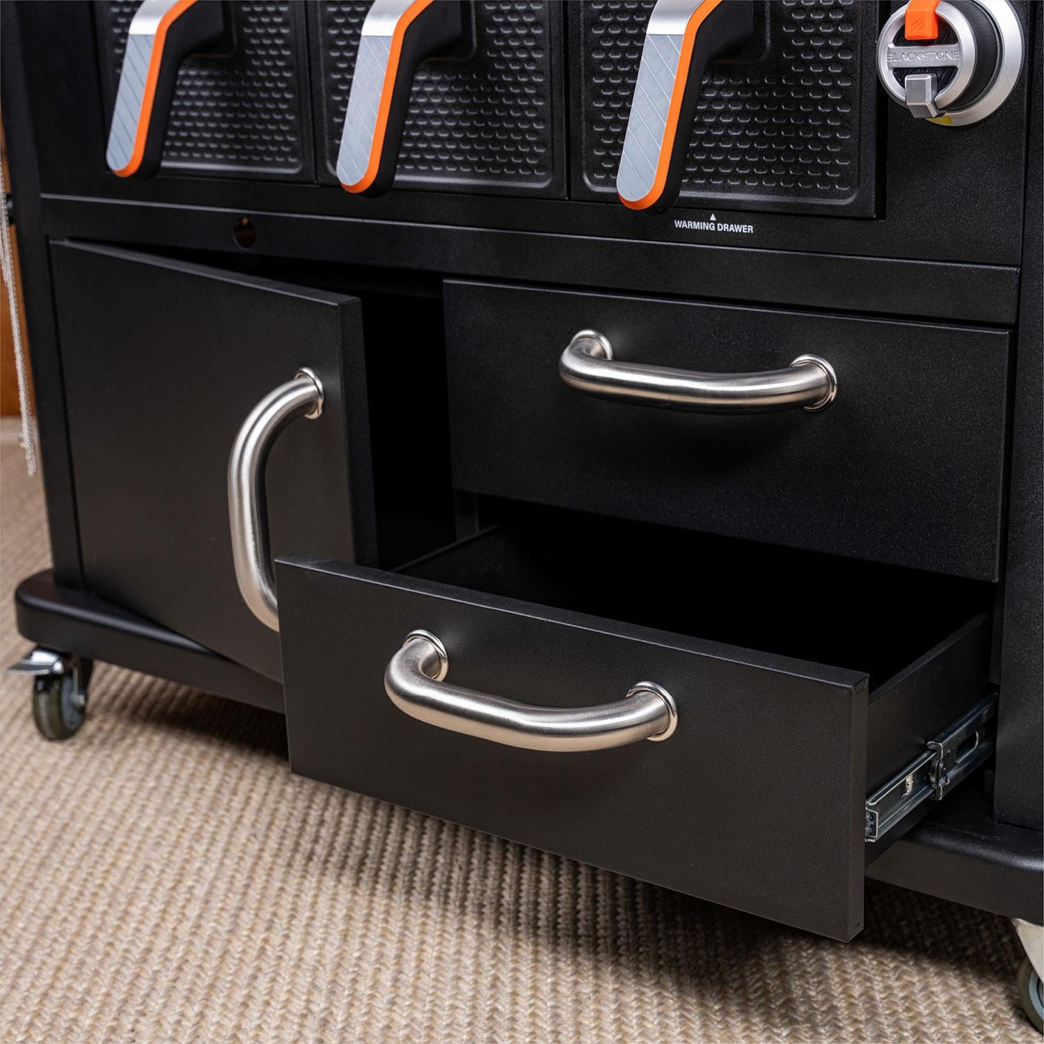- Two Electric 4-quart 13,000 BTU air fryer drawers and one 4-quart warming drawer
